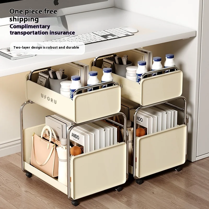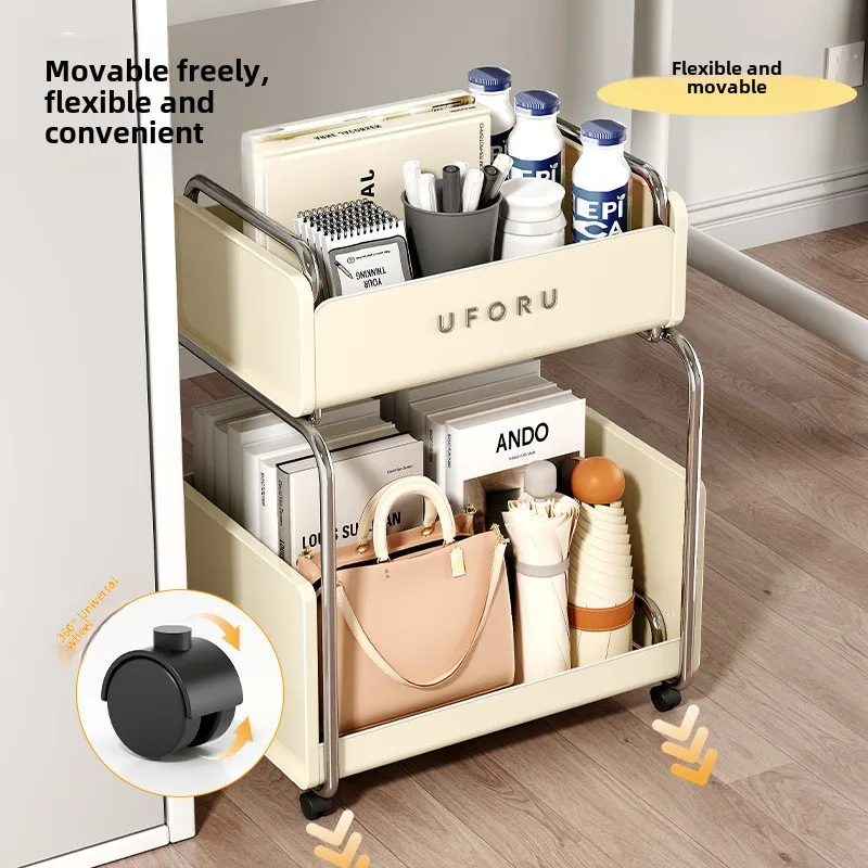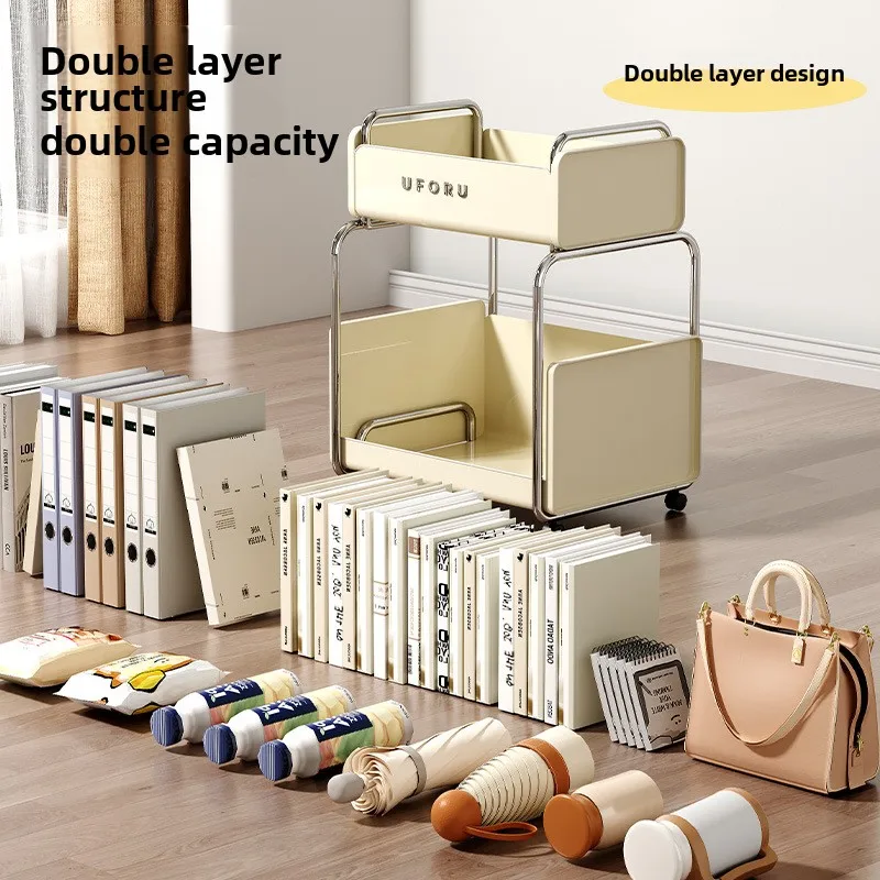 Multi-Functional Double-Layer Storage Rack Iron Home Student Removable School Bag Storage Trolley Plastic for Living Room