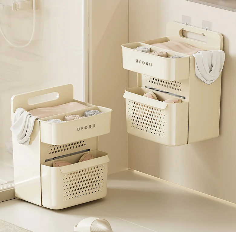 Large Capacity Wall-Mounted Plastic Dirty Laundry Hamper Household Bathroom Handheld Clothing Storage Bin No Drilling Required