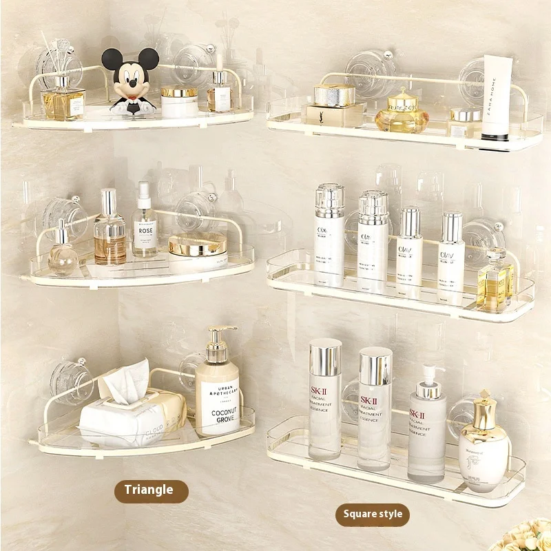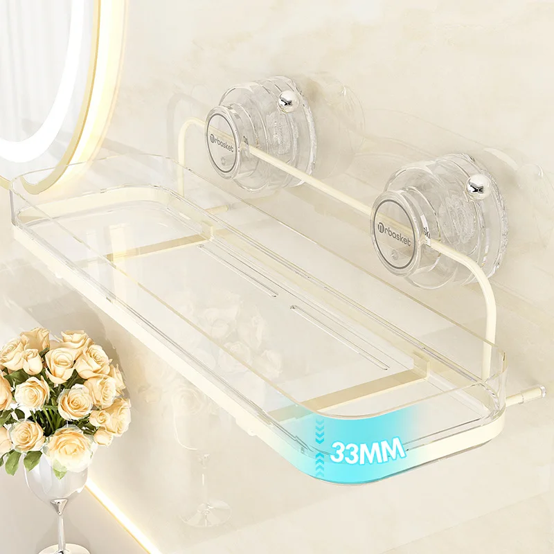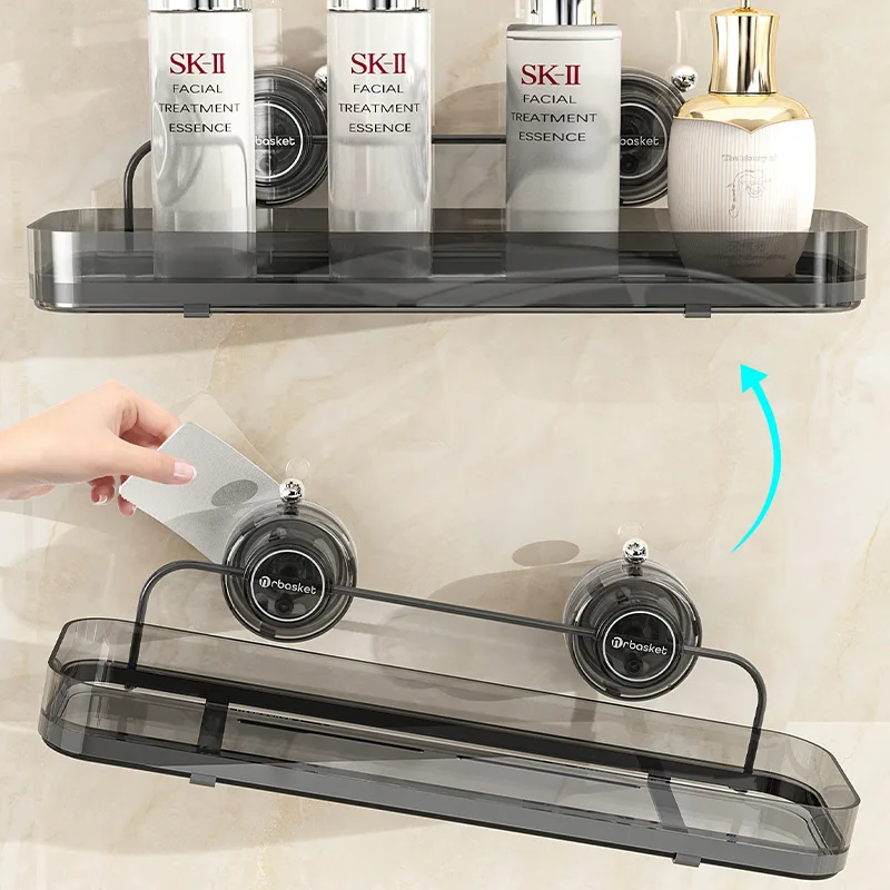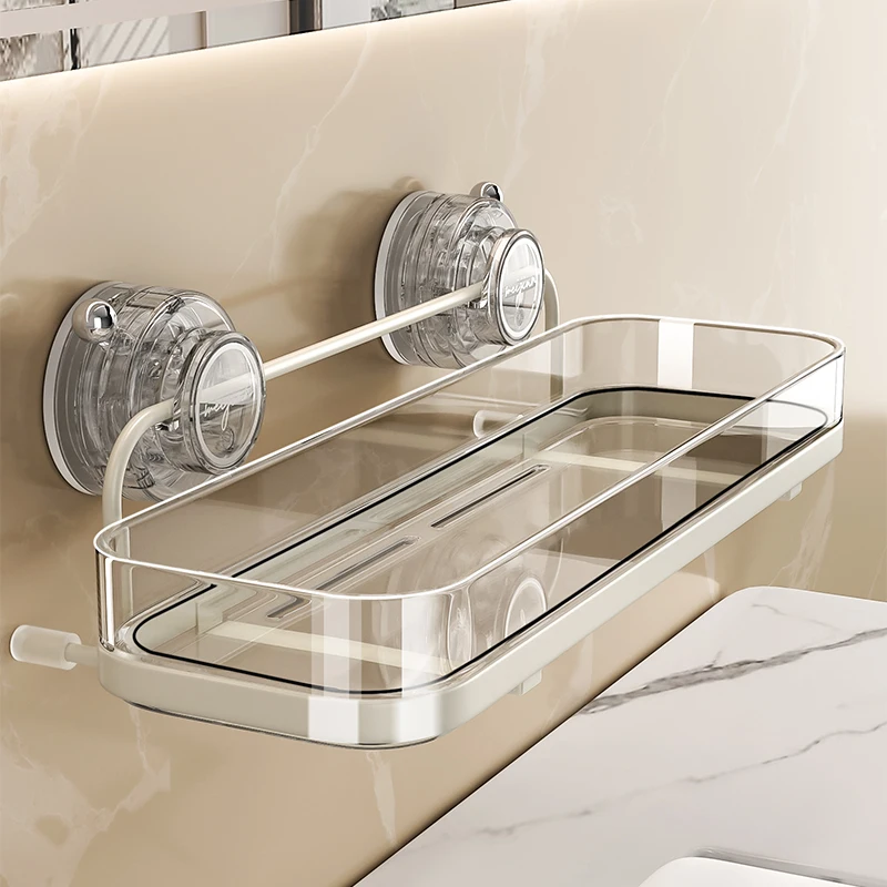 Portable Wall-Mounted Plastic Storage Rack Strong Suction Cup Bathroom Shelf for Home Bathroom