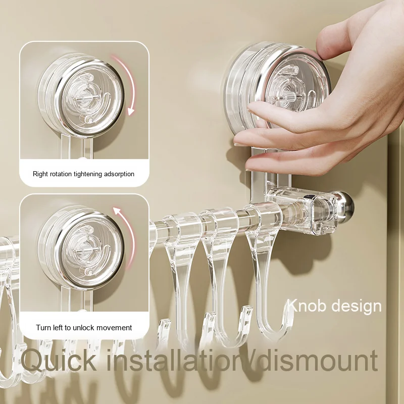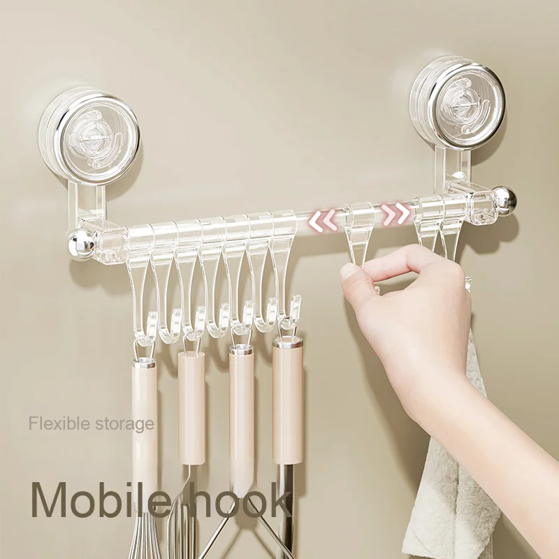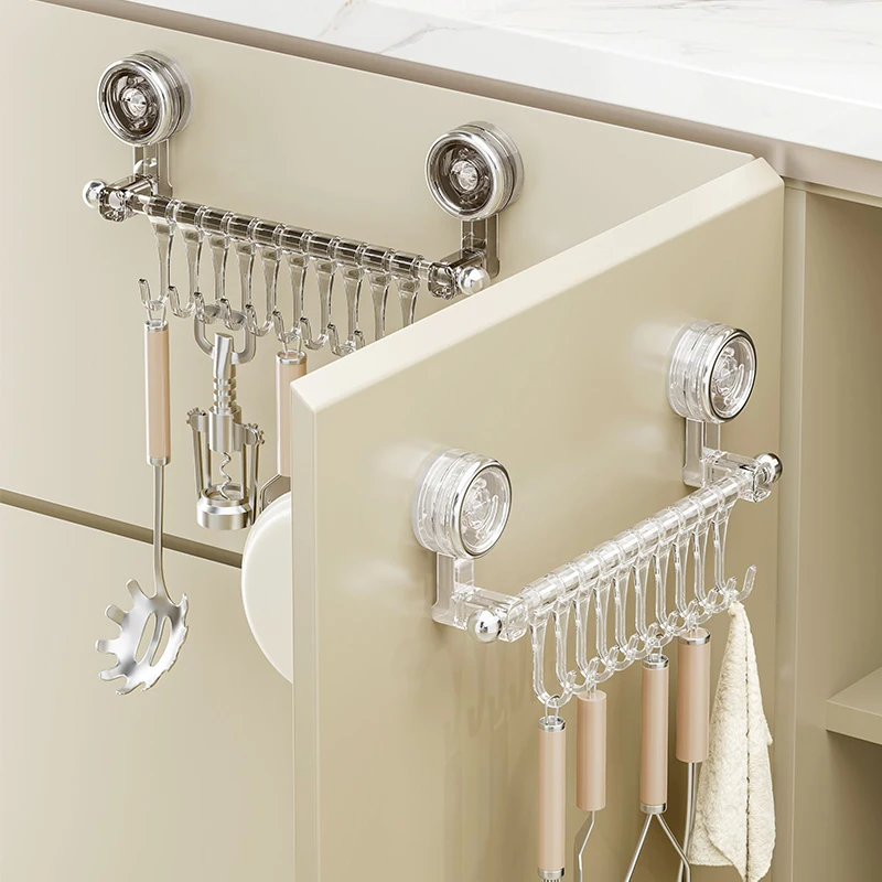 Plastic Suction Cup Slide Rail Wall-Mounted Storage Rack Hooks for Cabinet Door of Kitchen