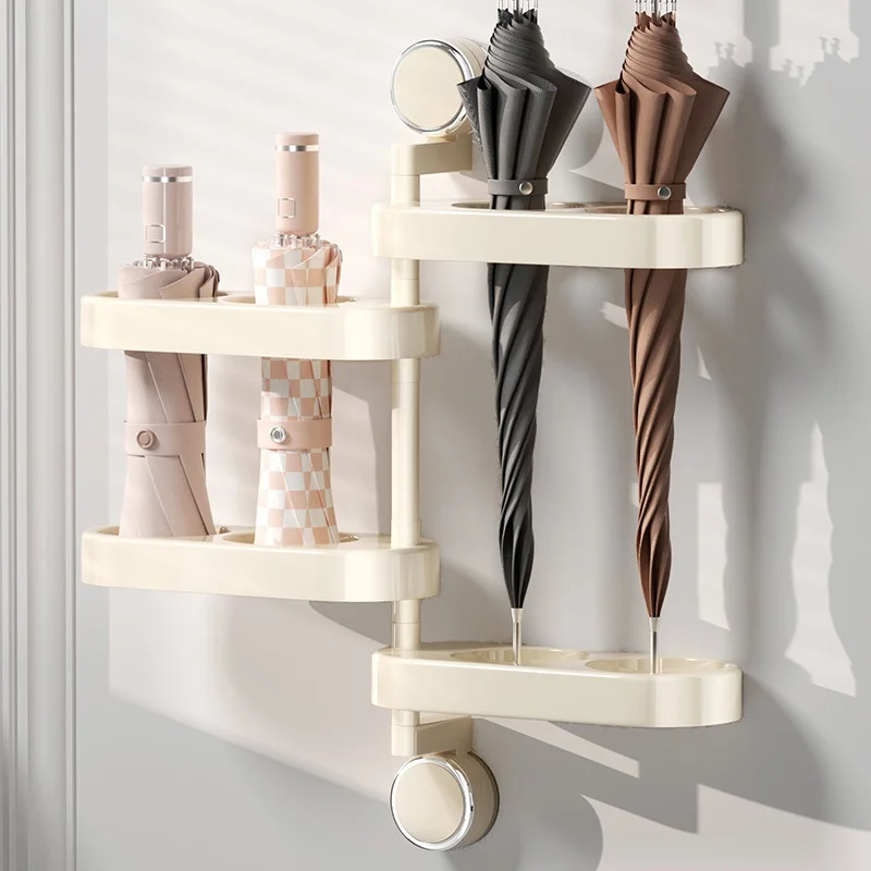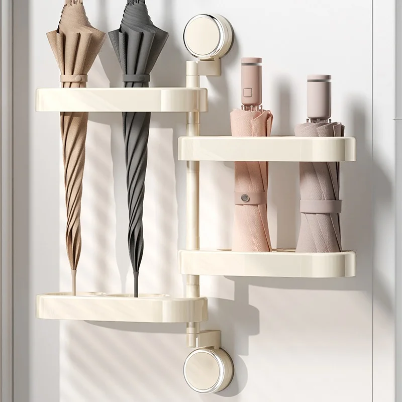 Wall Umbrella Storage Rack with Suction Cup Rotatable Holder Convenient Door Organizer for Home