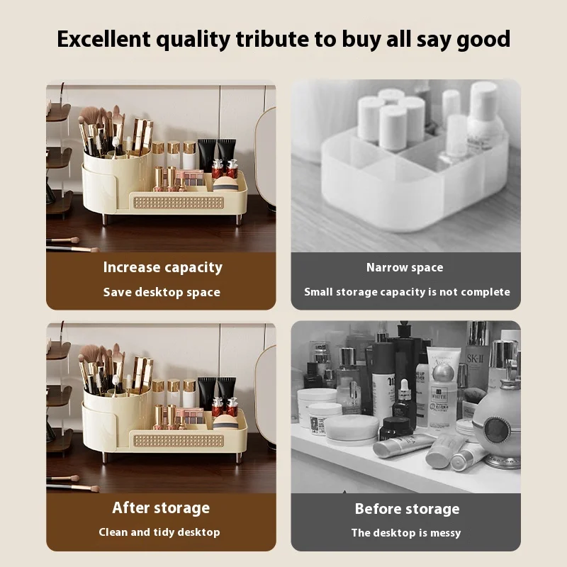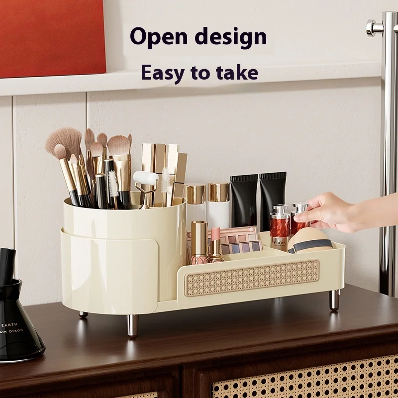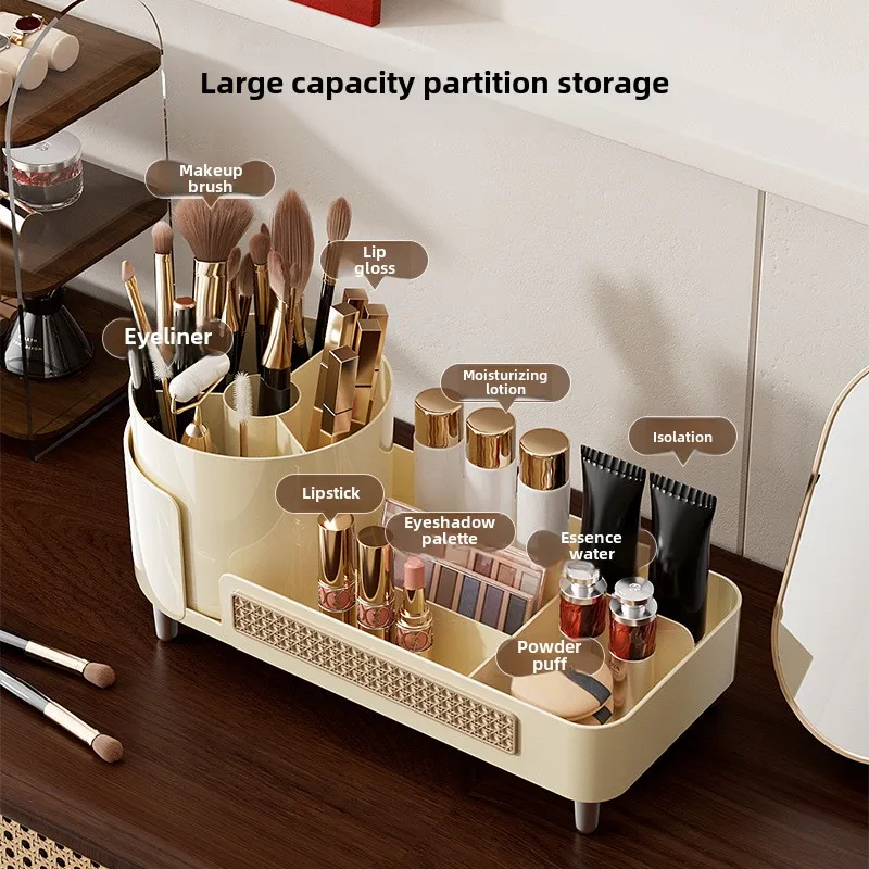 High-End Multi-Functional Makeup Box Large Capacity Desktop Rotatable Compartment Pen Holder PP Cosmetic Storage Bag Dressing