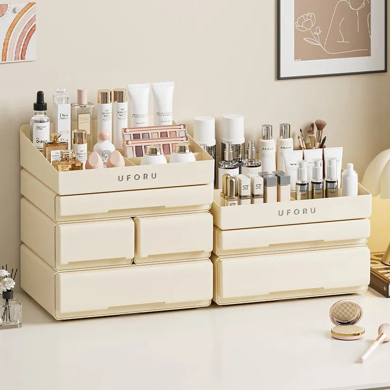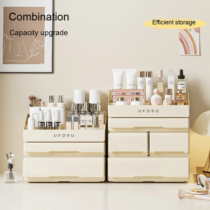 Modern Multi-Functional Drawer-Type Makeup Skincare Organizer Simple Cosmetic Storage Box for Home Bedroom