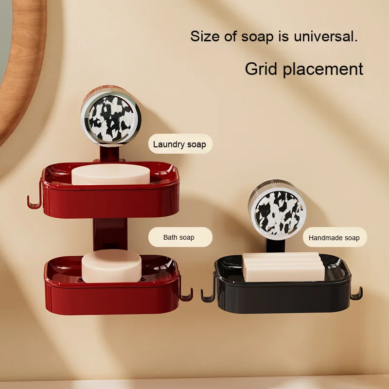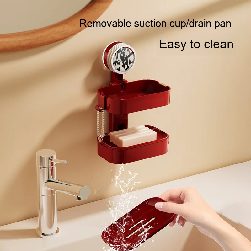 2026 New Plastic Suction Cup Soap Holder Wall-Mounted Soap Storage Box Draining Rack for Household Bathroom