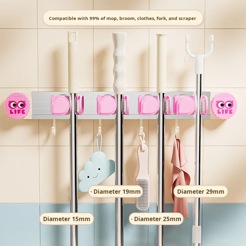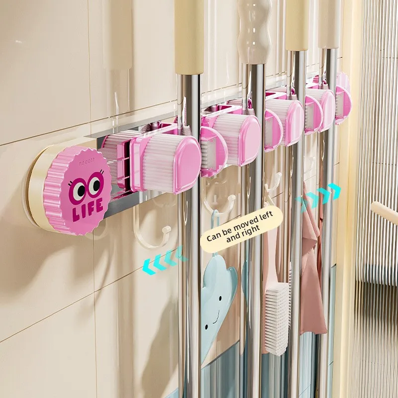 Wall-Mounted Adhesive Suction Cup Mop Holder No-Drill Bathroom Storage Organizer for Rag Broom Rack