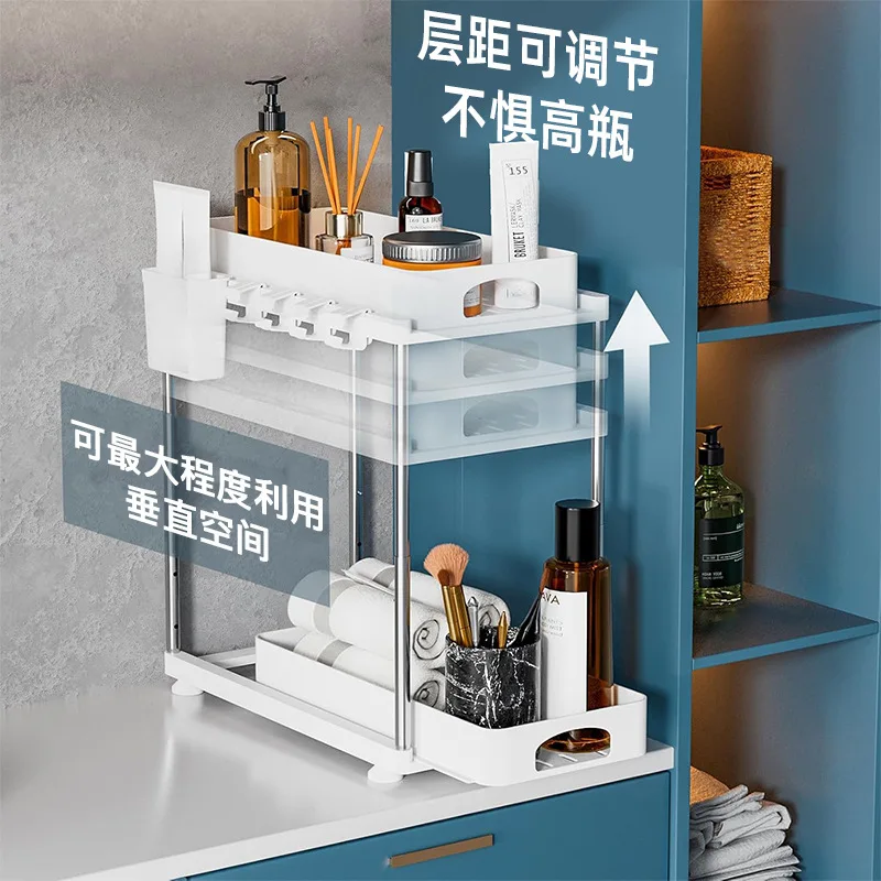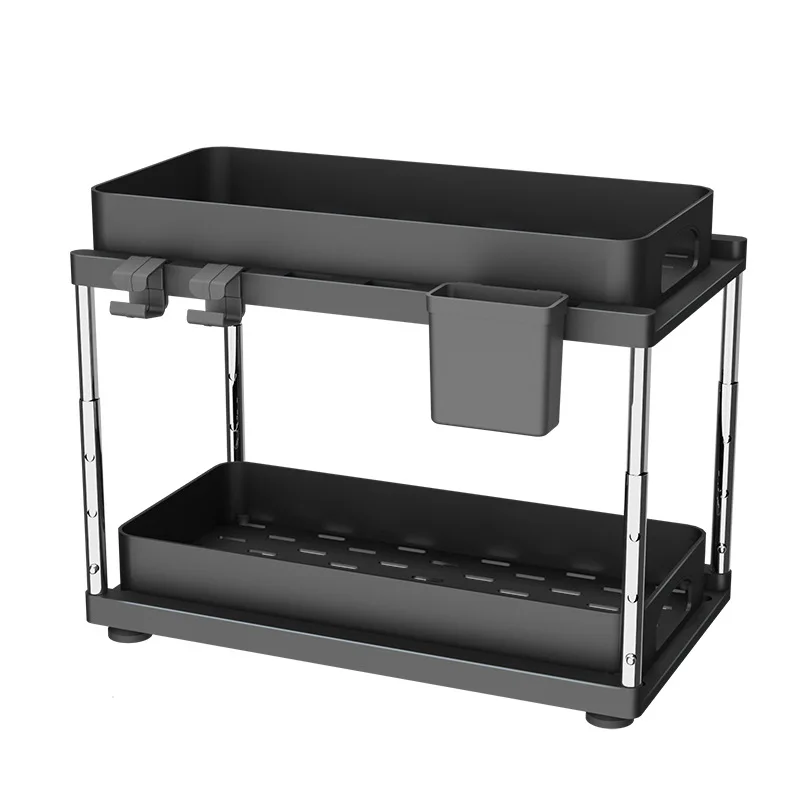 Adjustable Plastic Kitchen Sink Basket Household Countertop Seasoning Supplies Storage Rack Floor-Standing Cabinet Storage Rack