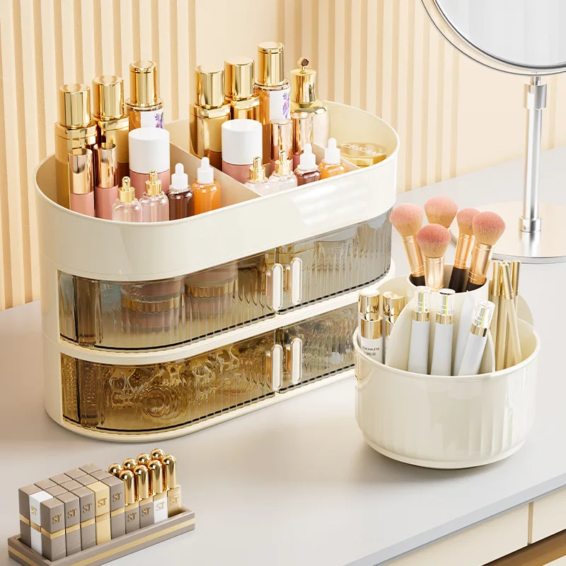 High-end Modern Multifunctional Sustainable Plastic Space-Saving Large Capacity Top-Press Jewelry Box for Kitchen Living Room