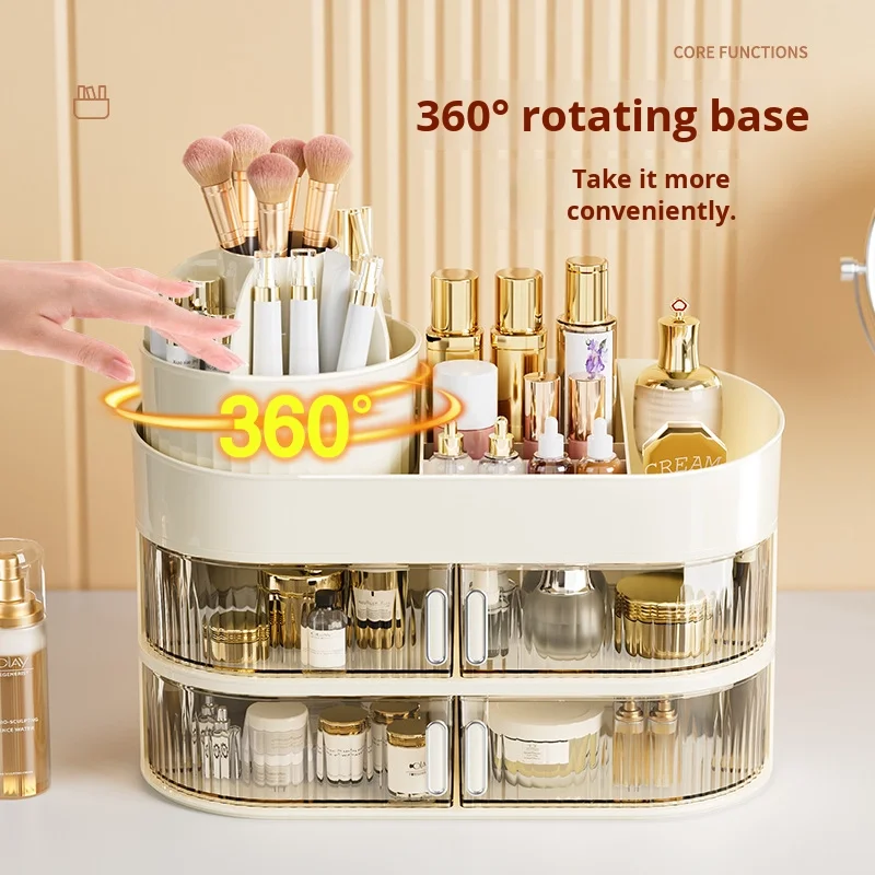 Fashion Makeup Organizer Makeup Set Storage Case With Rotating Makeup Brush Set Holder
