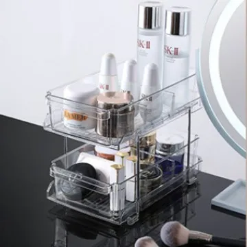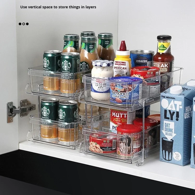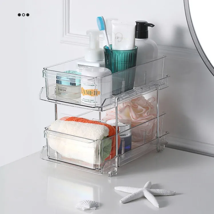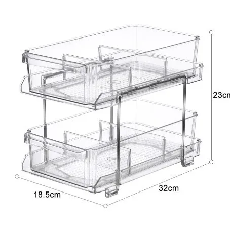 Double-Layer Desktop Cosmetic & Dinnerware Storage Rack Removable Plastic Kitchen Organizer Shelf Partition with Drawer