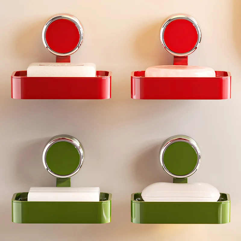 Wall-Mounted Household Bathroom Made of Plastic Soap Box with Lid Drain Storage Soap Rack