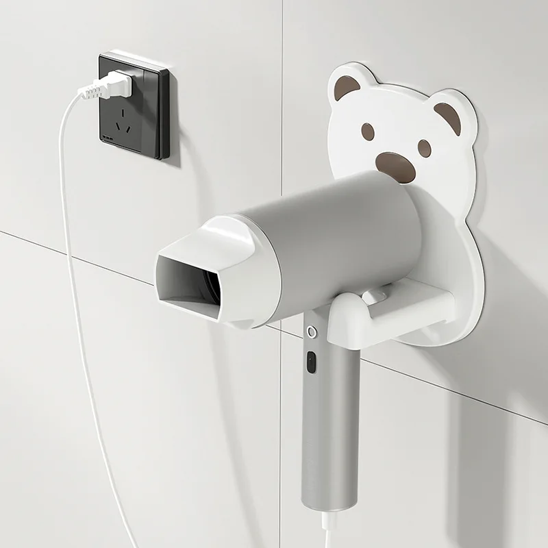 Creative Cartoon Hair Dryer Holder Double Tiers Wall-Mounted Storage Rack Plastic Bathroom Organizer Cleaning Accessory