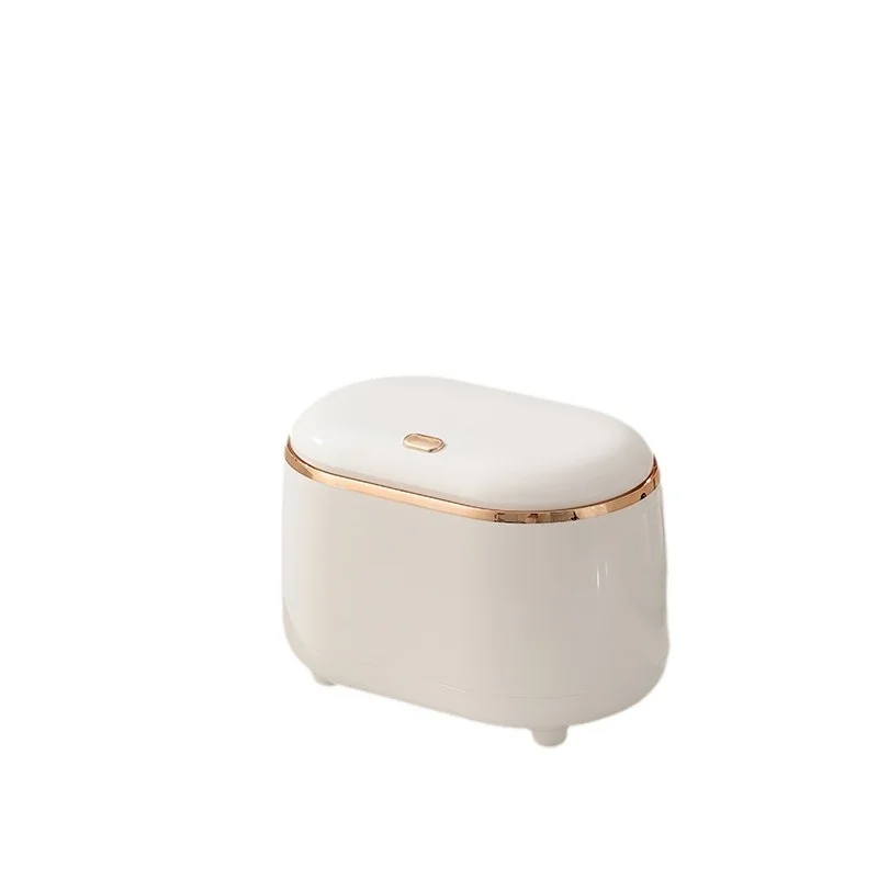 Light Luxury Self-Designed Small Trash Can Cross-Border Oval Lid Press Desktop Storage Bin Plastic Open Top TikTok Trending
