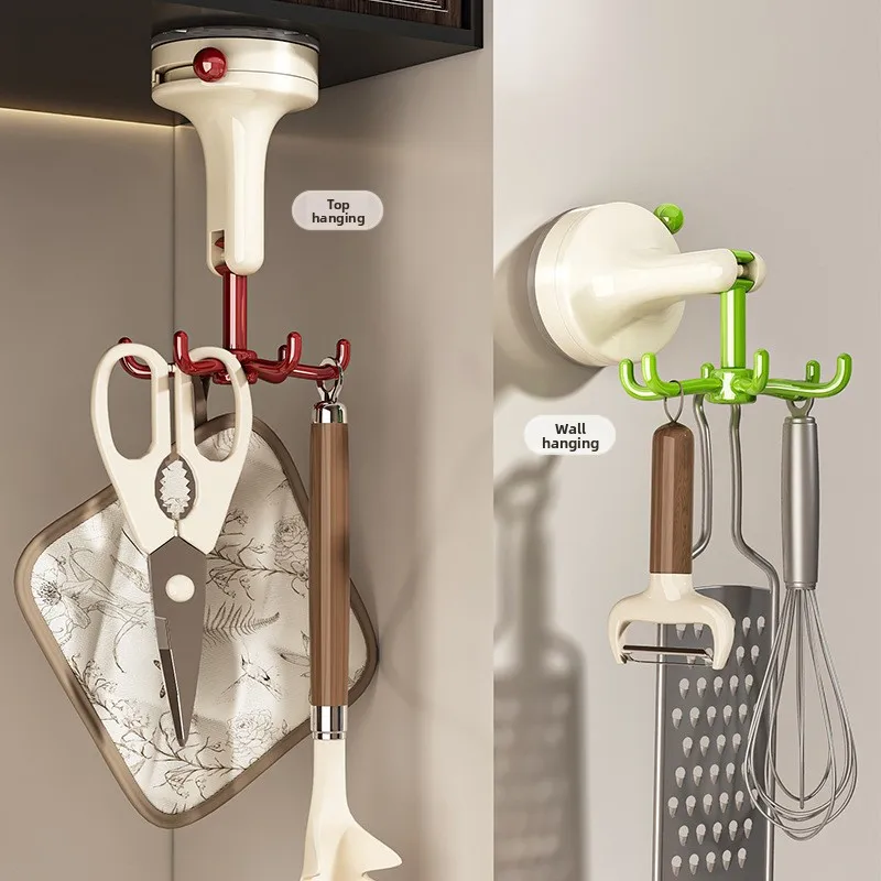 Kitchen Wall-Mounted Six-Claw Suction Cup Rack Plastic Utensil Storage Rotating Hook Dual-Use for Spatula Spoon