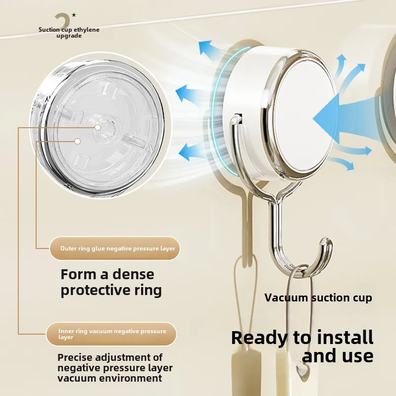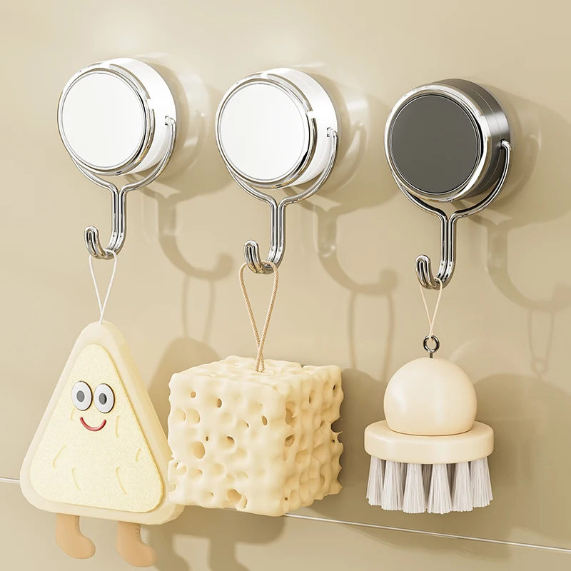 Strong Load-Bearing Kitchen Bathroom Punching Vacuum Suction Cup Hook Rotating Door Traceless Sticky Hook Plastic for Coat
