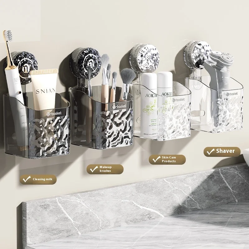 Glacier Pattern Suction Cup Hanging Basket Wall-Mounted Kitchen Storage for Onion Ginger & Garlic