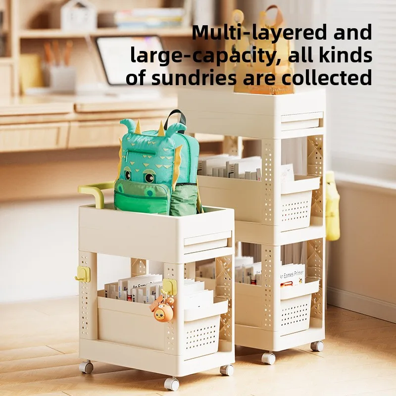 Multi-Functional Household Storage Rack School Bag Organizer on Floor-Standing Trolley for Bedroom Kitchen for Organizing Racks