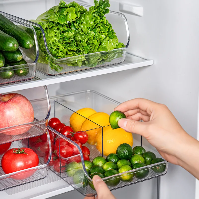Modern Large Opening Food Grade PET Refrigerator Storage Box Vegetable Fruit Organizing Fresh-Keeper for Frozen Eggs Kitchen
