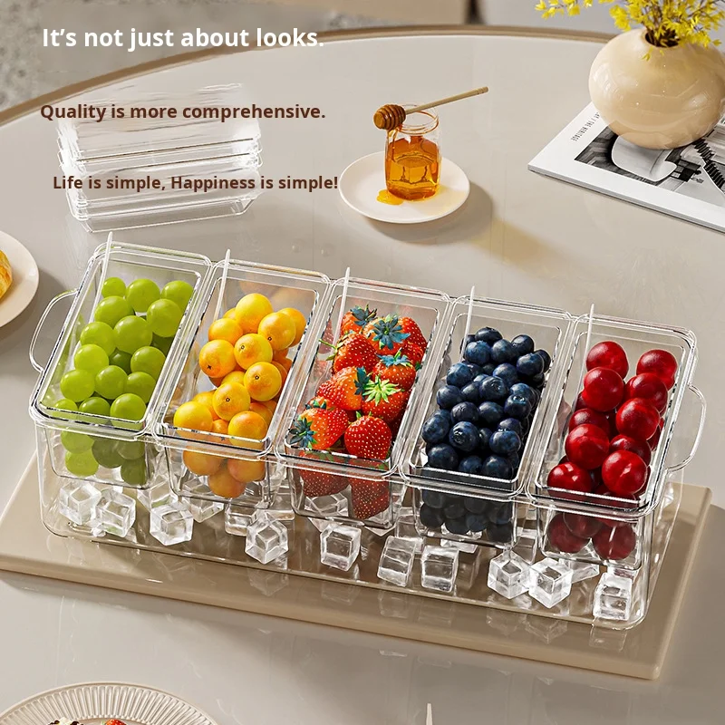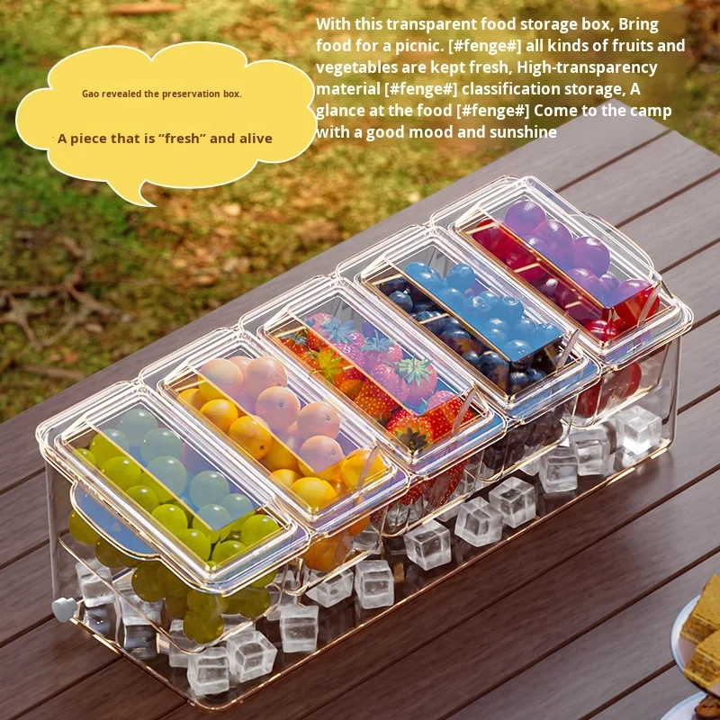 Modern Design Household Plastic Fresh-Keeping Salad Storage Box Food Grade Outdoor Party Picnics & Ice Compartment Tray