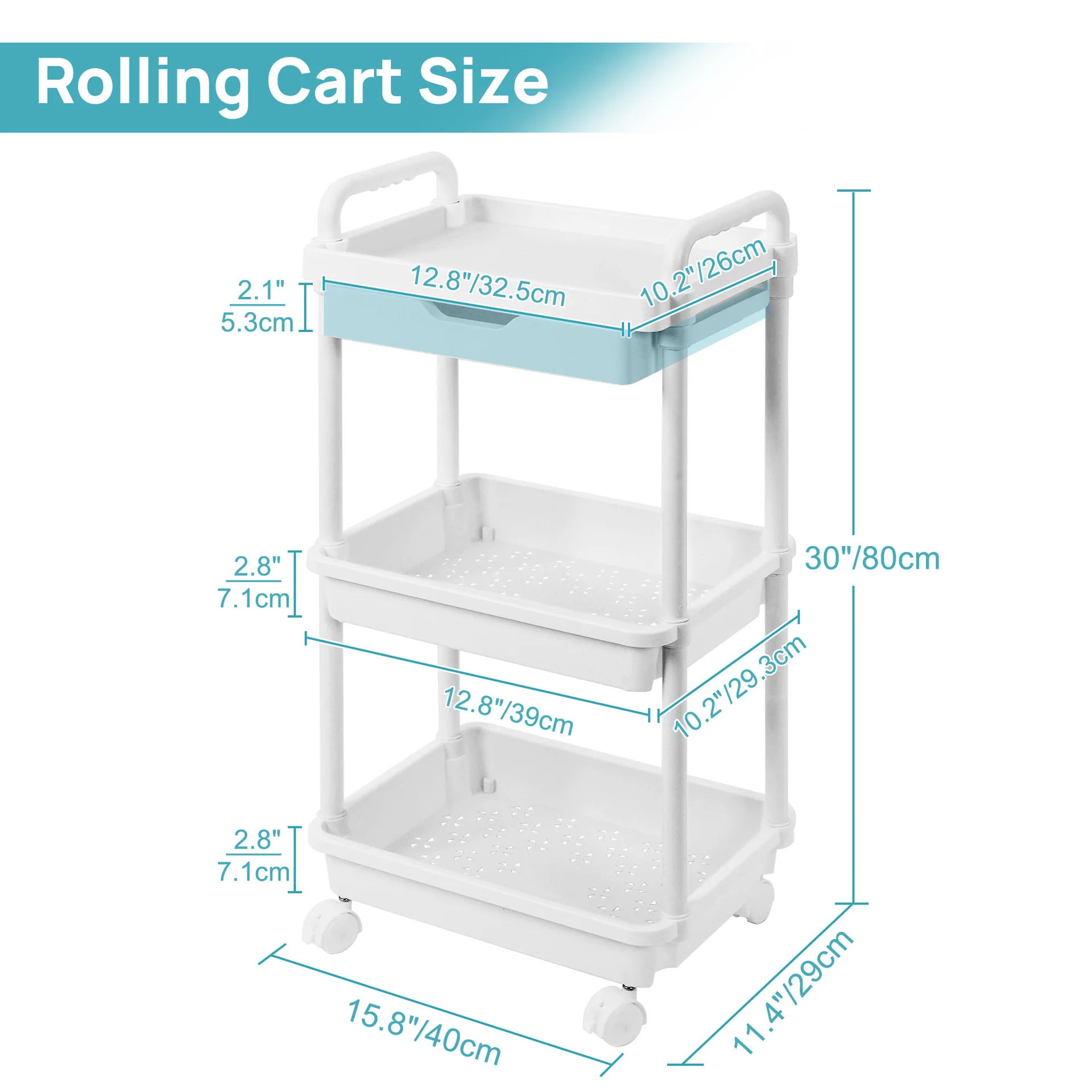 Small Multi-Layer Storage Cart with Drawer for Household Bathroom or Toilet Fruit Vegetable & Snack Basket Mobile Rack