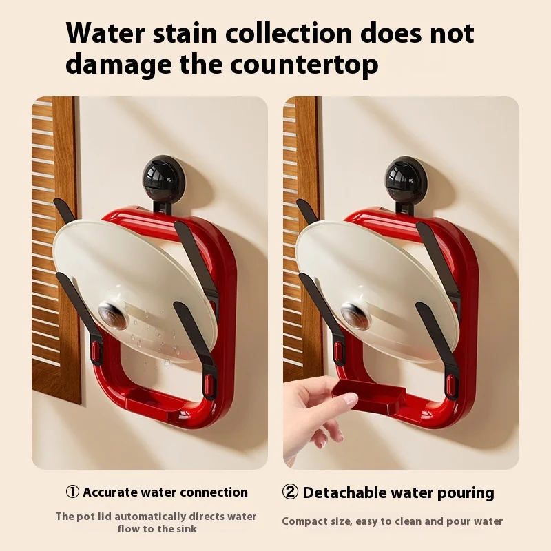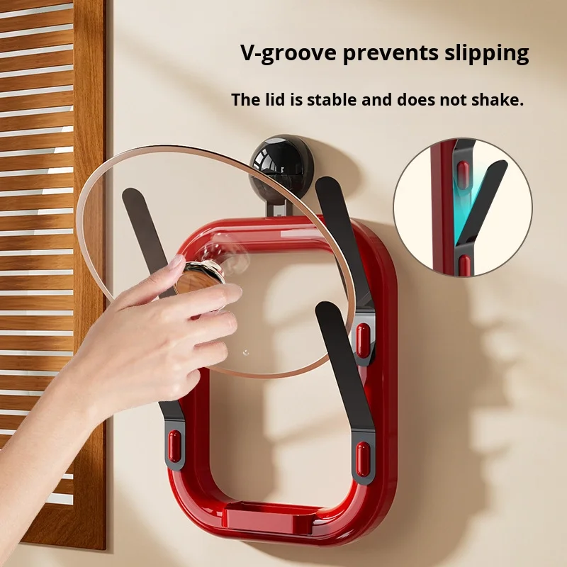 Multi-Functional Suction Cup Pot Lid Cutting Board Rack Detachable Draining Tray Wall-Mounted Storage Rack with Plastic Material
