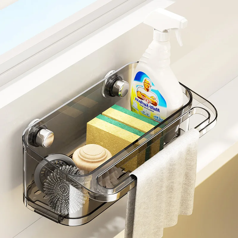Multi-Functional Wall-Mounted Suction Cup Sink Storage Rack Sponge Brush Draining Basket Organizer for Kitchen