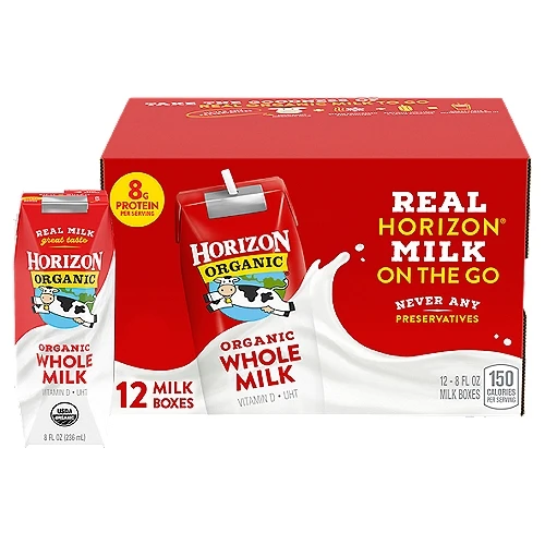 Horizon Organic 8 oz. PET Material Shelf-Stable Whole Milk Boxes 12 Pack for 0-12 Months Baby & Kids Feeding Products