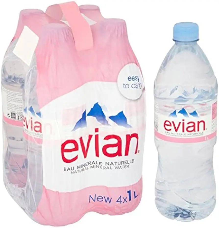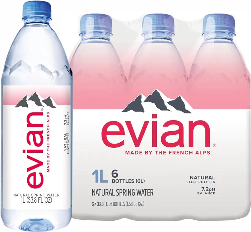 Evian Natural Spring Water Premium Glass Bottles ISO Certified France 33.8 Fl Oz (Pack of 12)