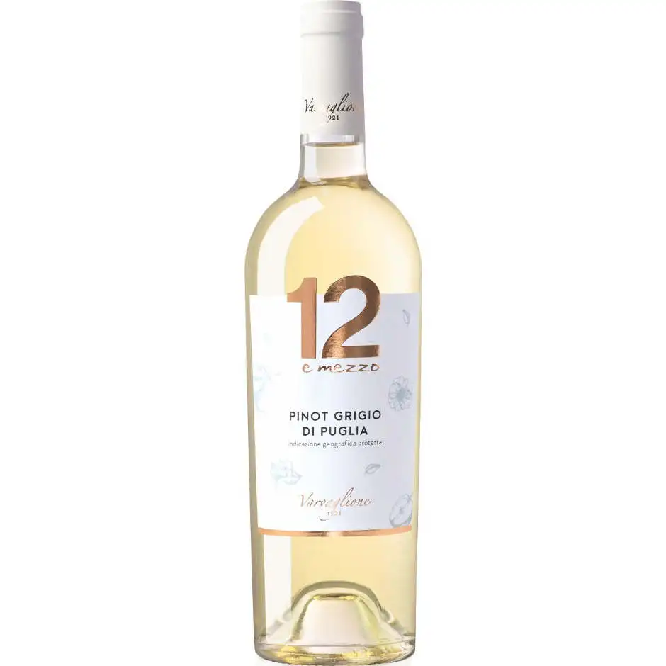 Italian Puglia IGP Pinot Grigio White Wine Perfect with Light Meals and Shellfish 6 Bottles Per Box Sweet and Dry Taste