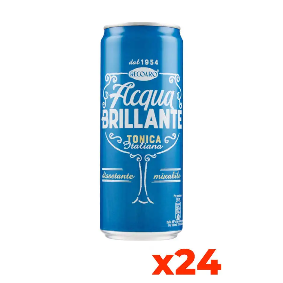 Recoaro Brilliant Water Italian Premium Quality 330ml Sleek Can 24-Cans of Italian Sparkling Soda for Cocktails at Home