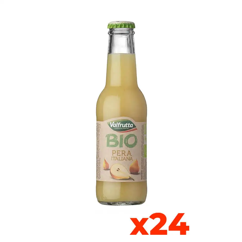 Valfrutta Premium Quality Italian Organic Pear Juice 200ml Glass Bottle 24 Bottles Fresh Fruit Rich in Vitamin C