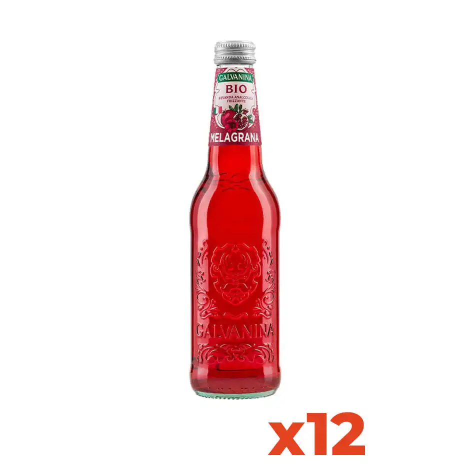 Galvanina Italian Organic Premium Quality Pomegranate Soda 355ml Glass Bottles 12 Pack for Home Use