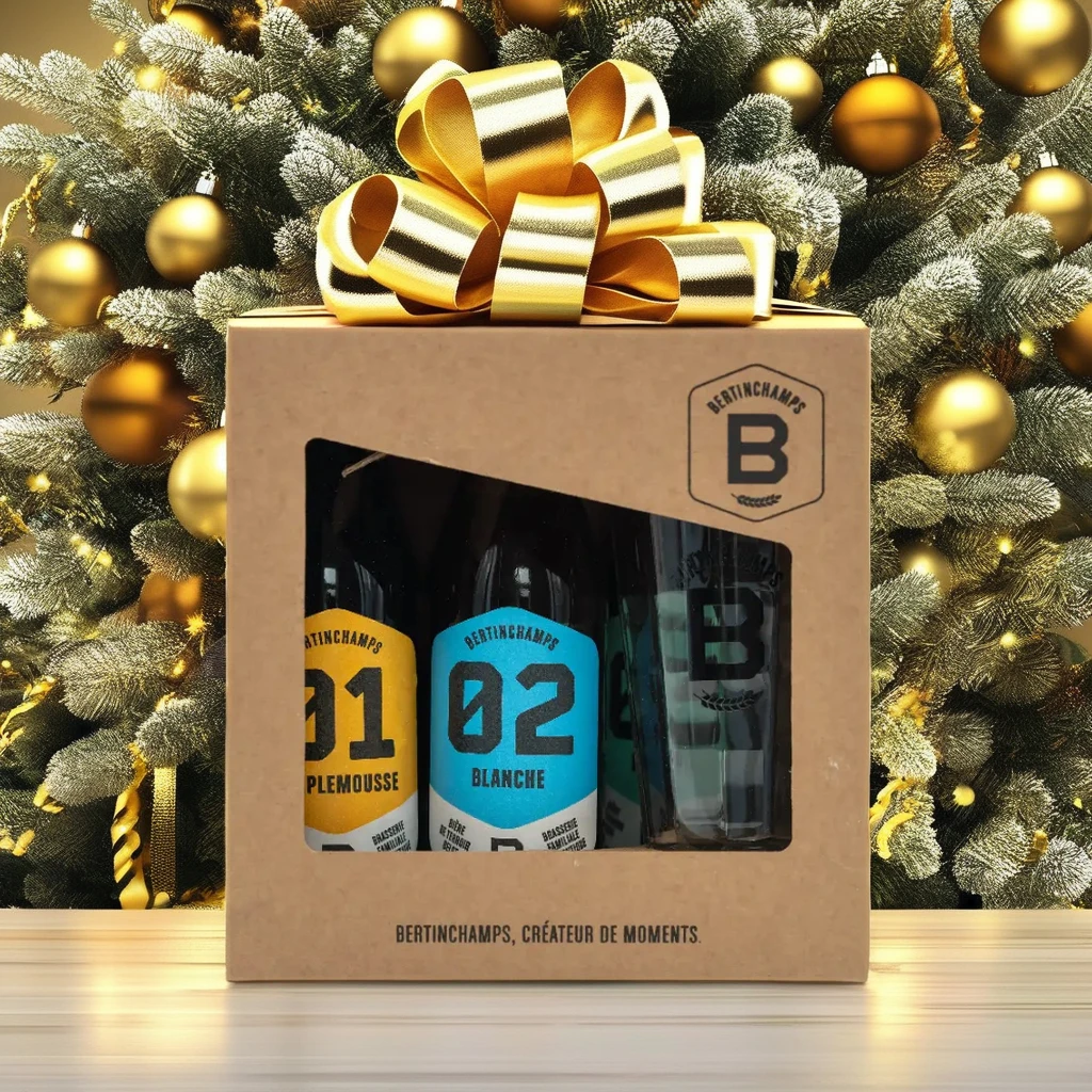 Authentic Bertinchamps 5x33cl Premium Beer Glass Set Christmas Gift Box Corporate Holiday Idea Bulk Promotional 5.6% ABV High