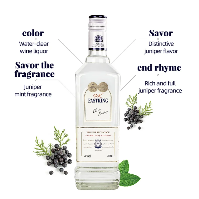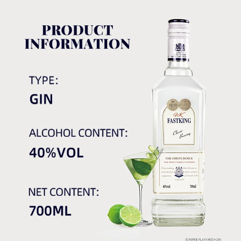 Best Selling FASTKING Grade a Small Batch Gin 40% ABV 70cl Bottle Featuring Juniper Citrus Notes Shandong for Cocktails Gifting