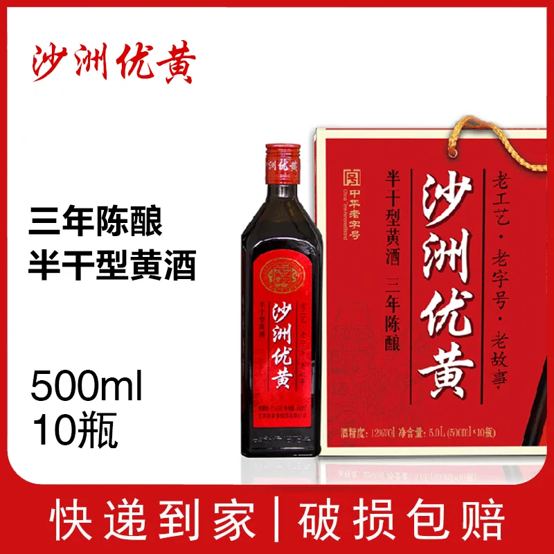 Shazhou Youhuang Three-Year Aged Semi-dry Refreshing Yellow Wine T0 Grade 500ml Box of 10 Bottles 42% ABV a Specialty Jiangnan