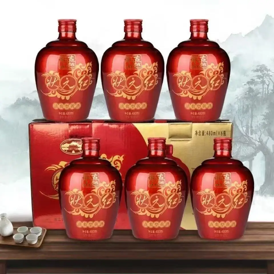 Gu Yue Longshan Zhuangyuanhong Refreshing Yellow Wine 480ml in 6 Bottles Made in China Long Shelf Life