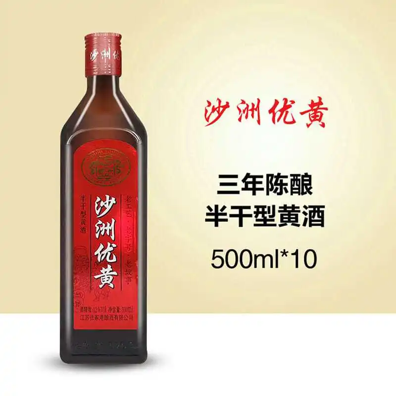 Shazhou Youhuang Three-Year Aged T0 Grade Semi-dry Refreshing Yellow Wine 500ml Box of 10 Bottles 42% ABV a Specialty Jiangnan
