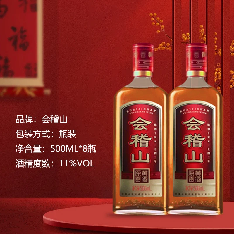 Kuaiji Mountain Original Fragrance Yellow Wine 42% ABV Jiangsu 500ml*8 Bottles T0 Grade 9999 Days Shelf Life