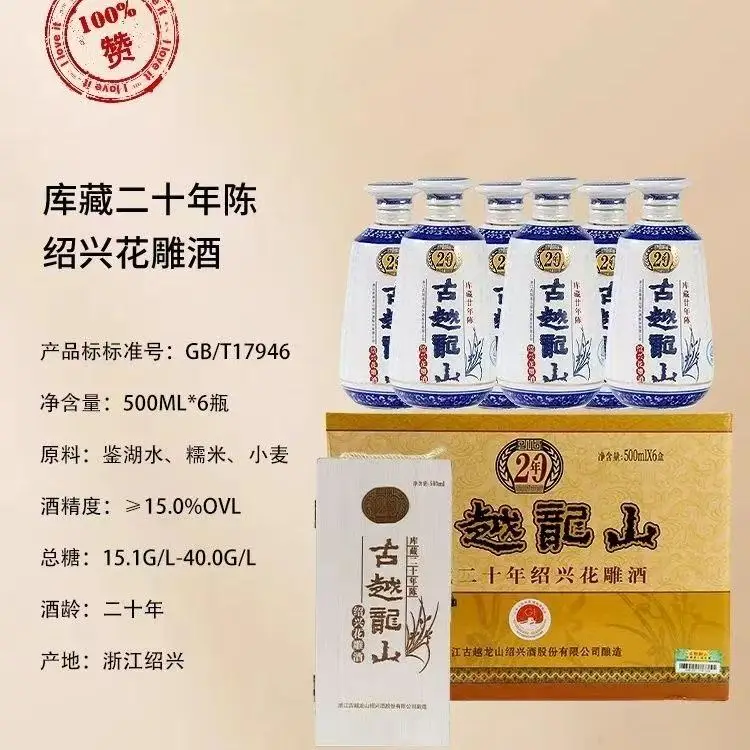 Gu Yue Long Shan 20 Years Old 500ml*6 Wooden Box Set China 999 Shelf Life