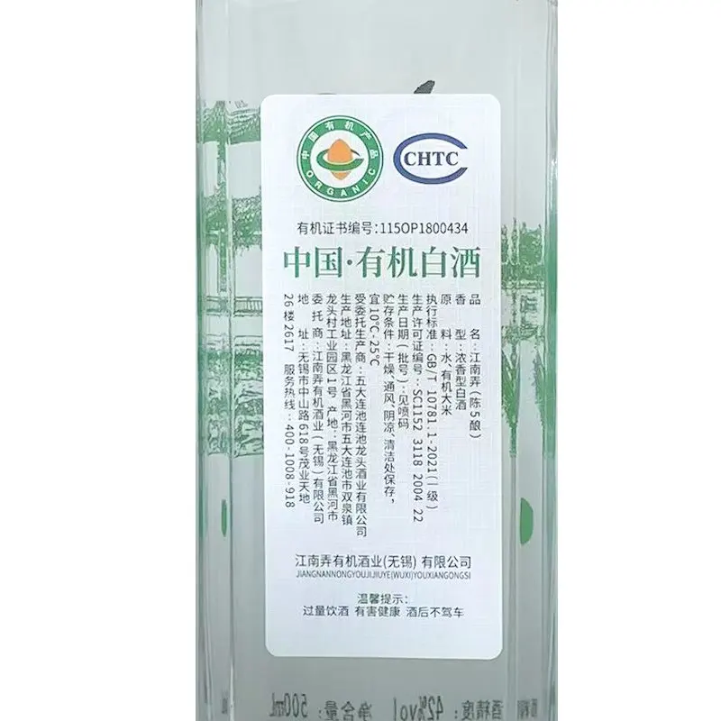 Jiangnan Lane Organic Baijiu 5-year Aged Strong Aroma 42 Degrees 500ml*6 Boxes Made Organic Rice Jiang Nan Nong T0 Grade