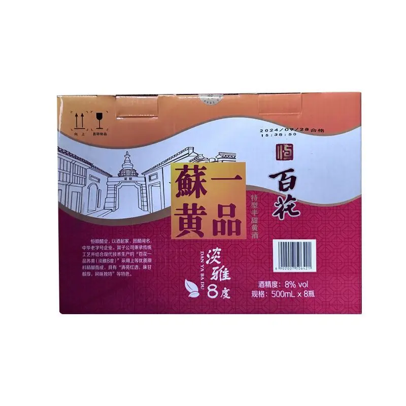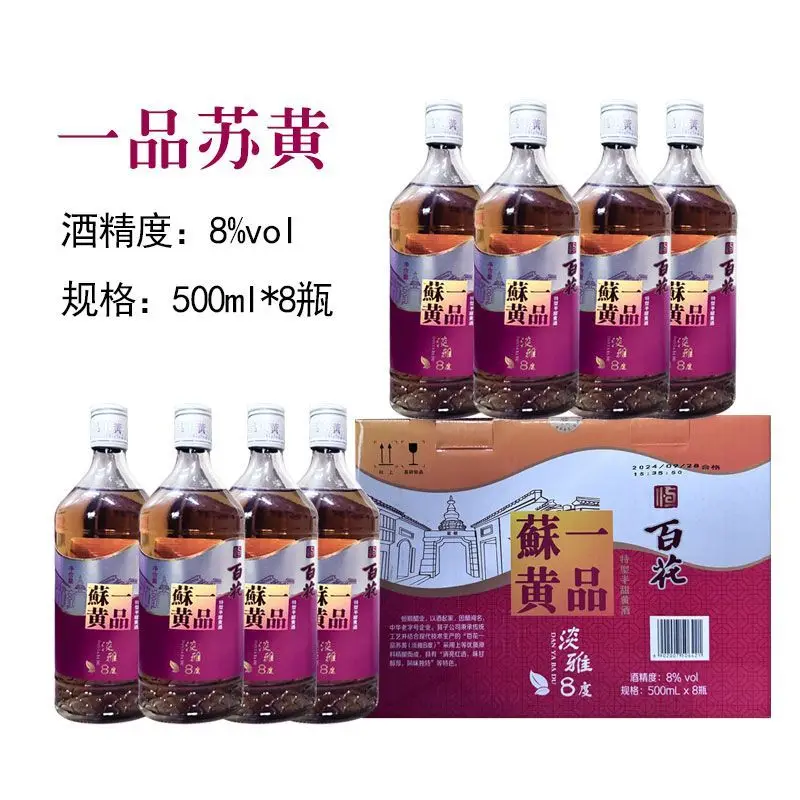 Authentic Hengshun Baihua Chinese Liquor T0 Grade Yellow Wine One Su Huang 500ml*8 Bottles Full Case Special Semi-dry 42% ABV