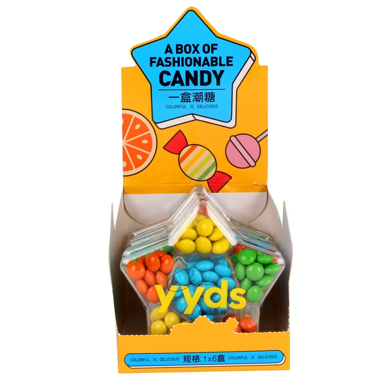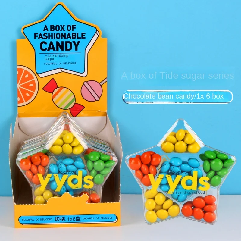 6 Boxes 78g Five-Pointed Star Cocoa Butter Chocolate Beans Bittersweet Milk Flavor Soft Candy for Kids Casual Snacks Wholesale