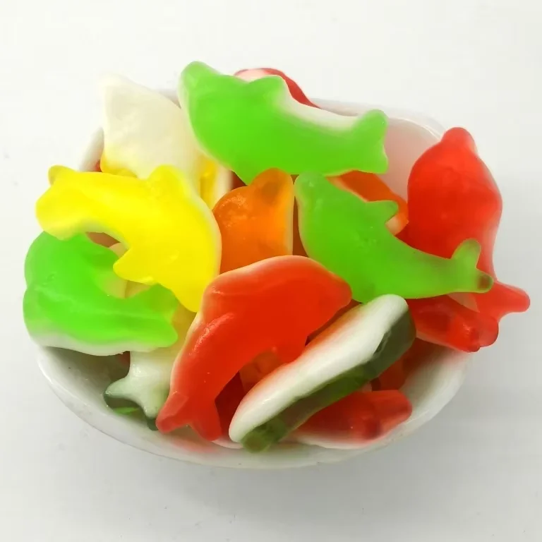 Two Tone Dolphin QQ Bulk Gummy Snacks Fruity Strawberry Flavored Sweet Candies in Bag
