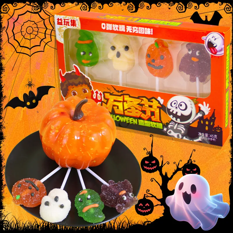 Pumpkin Ghost Shape Halloween Bouquet Creative Soft Candy Gift Snack Boxed Supermarket Fruity Hot Sale Coated Bag