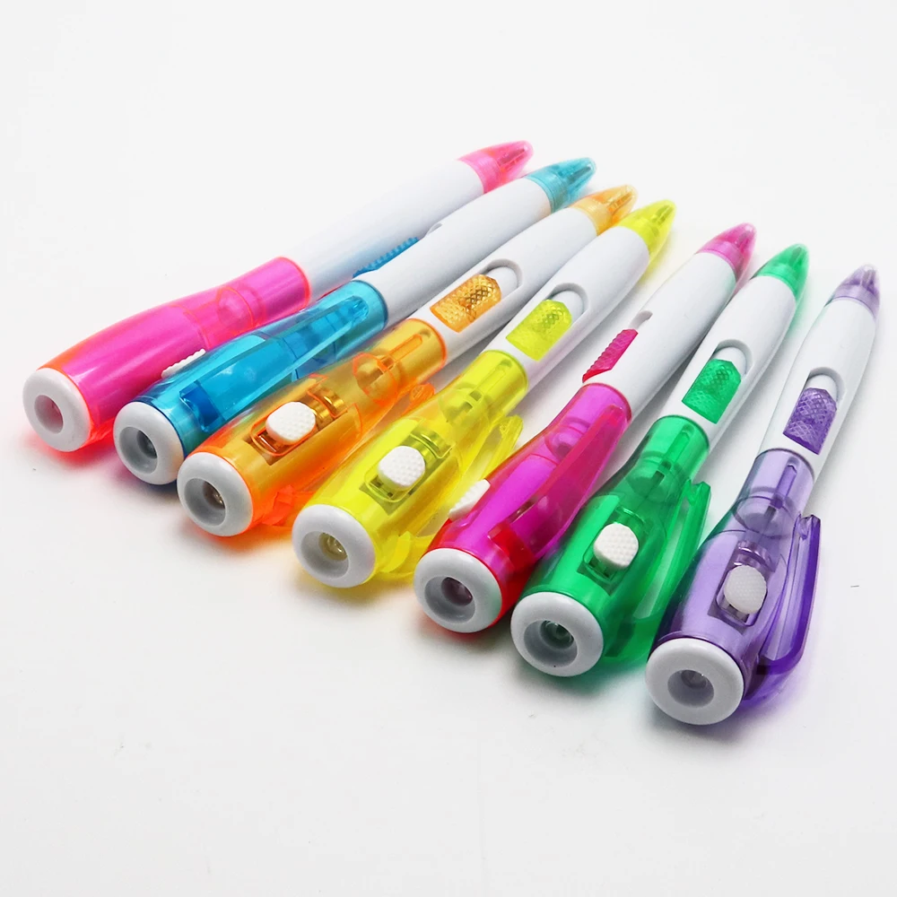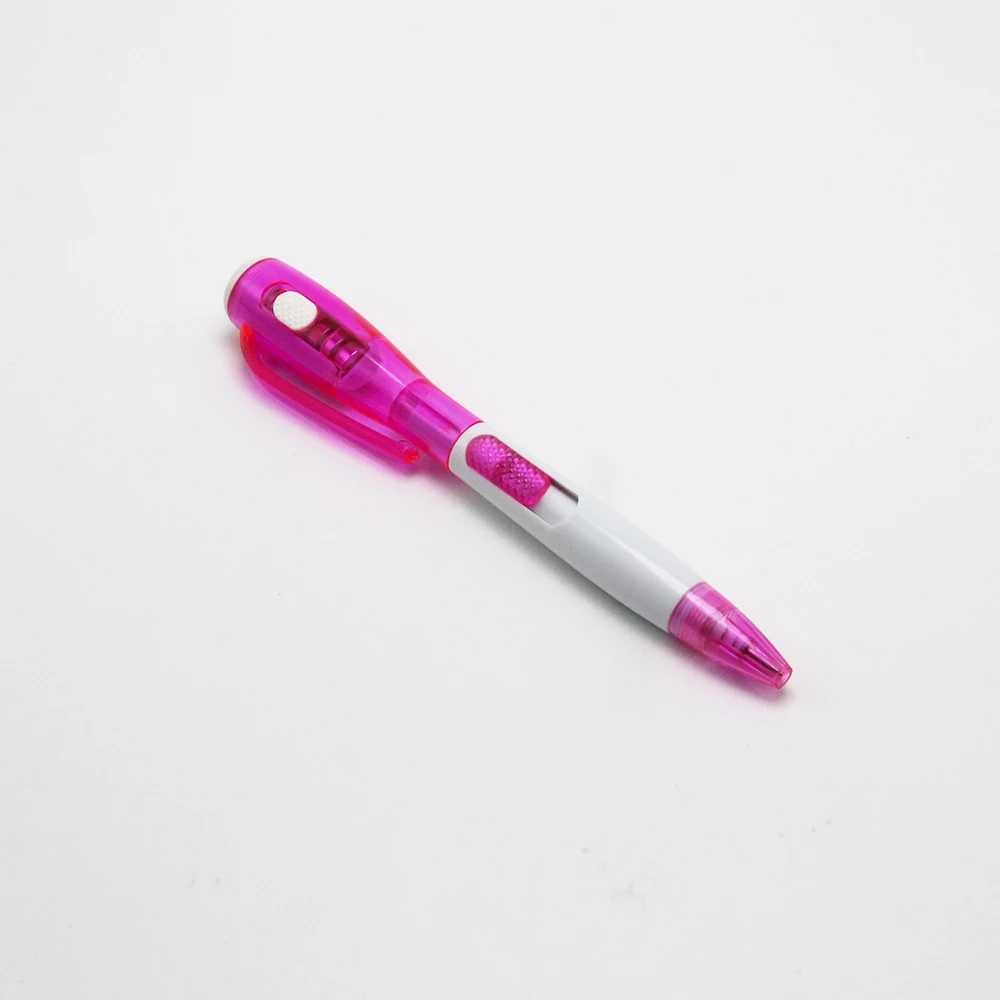 Hot Selling Cheap Multi Color Flashlight Pen Plastic Led Light Ball Pen with Custom Logo