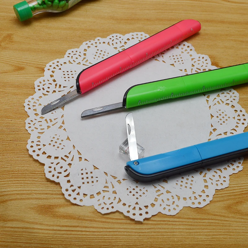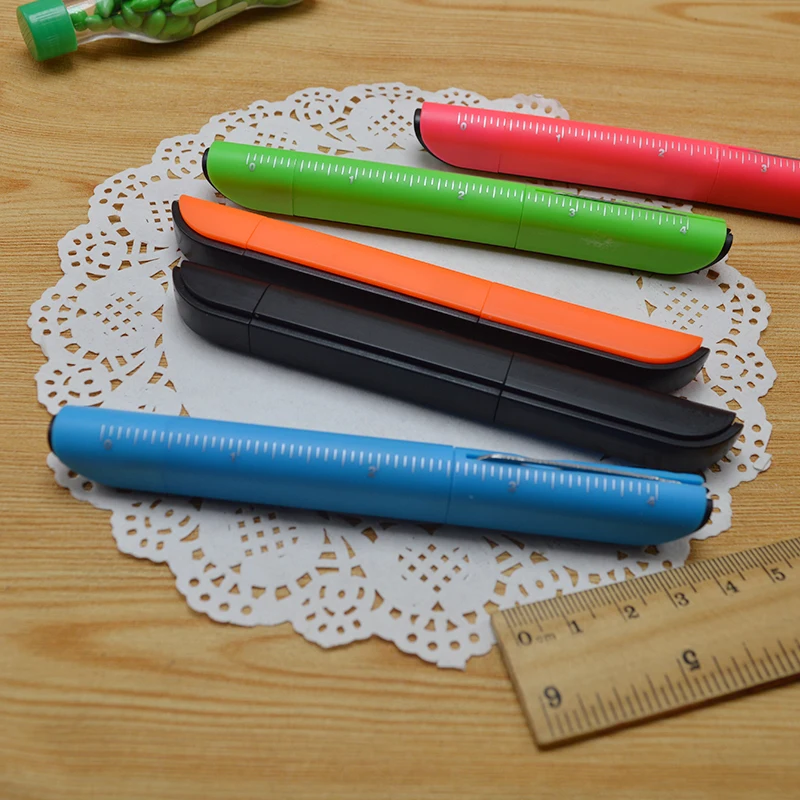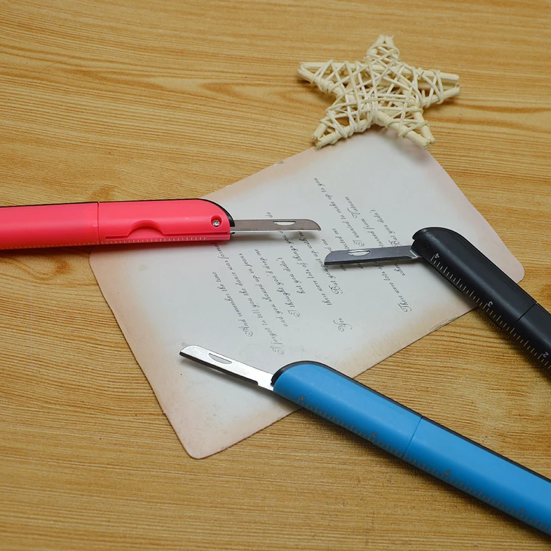 Multi Function Creative Plastic Portable Ruler Knife Ballpoint Pen with Scissors