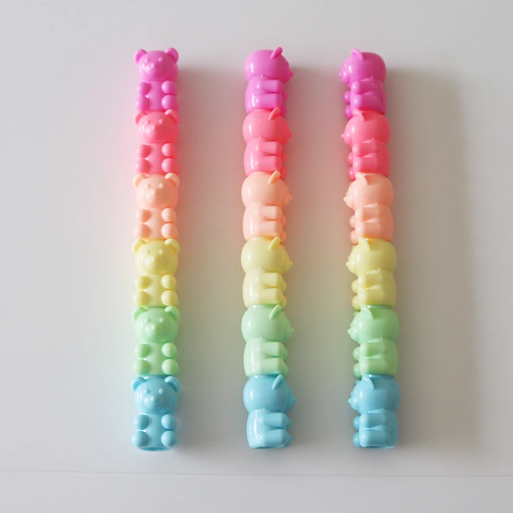 Promotional Plastic Made Kids Multi Color 8 Types Cute Shape Dismountable Design Highlighter Pens