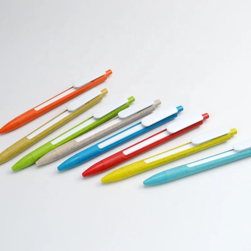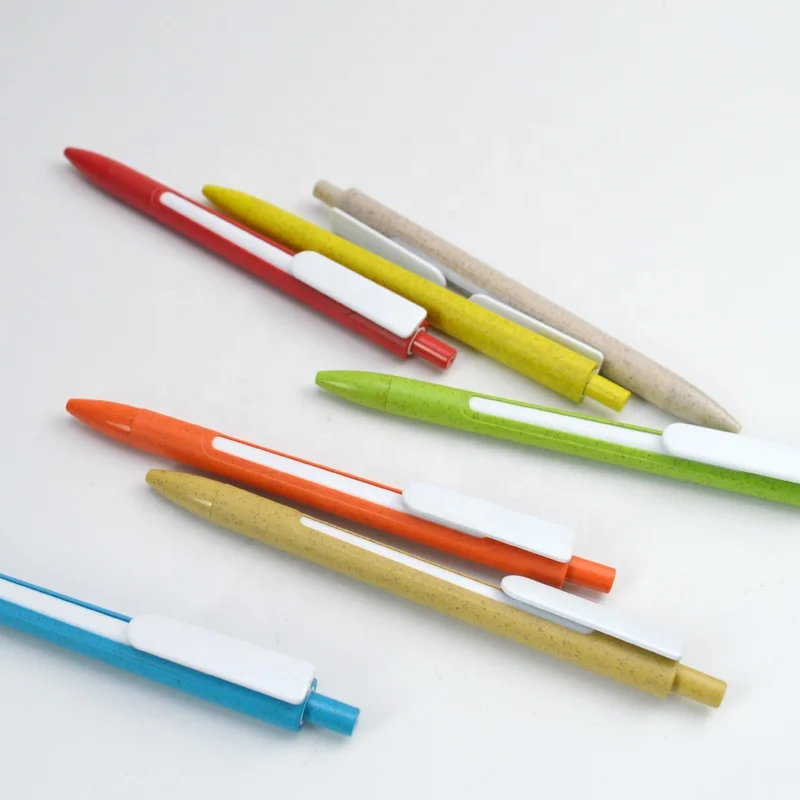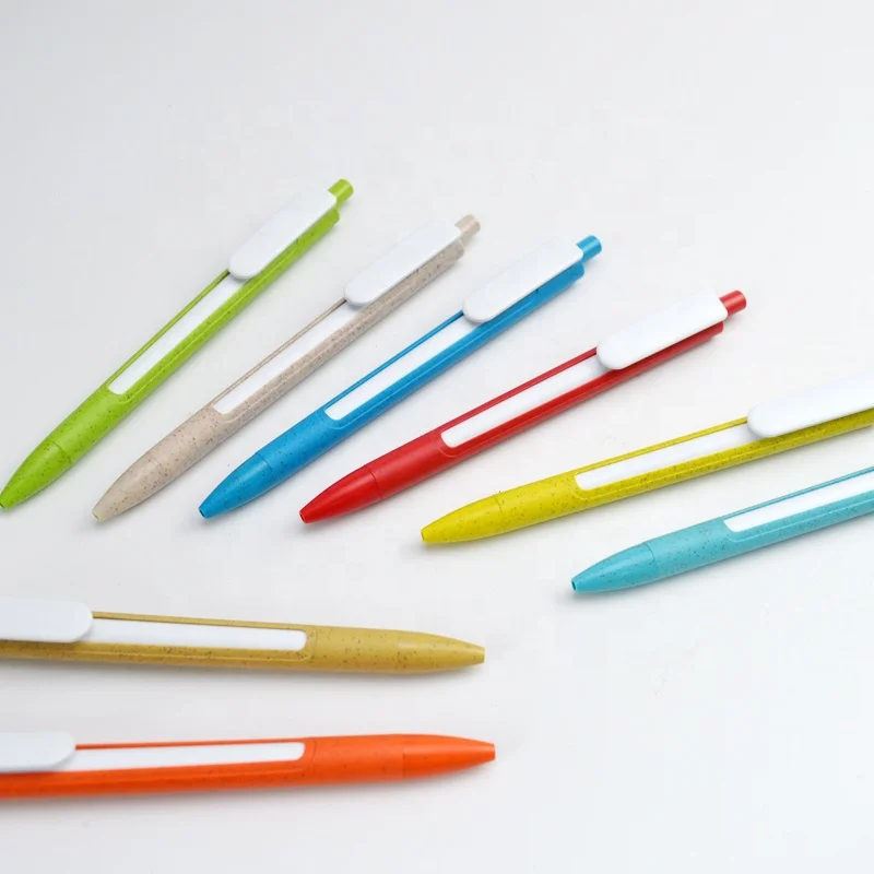 2026 Eco Friendly Recycled Wheat Straw Plastic Promotional Ball Point Pens with Custom logo