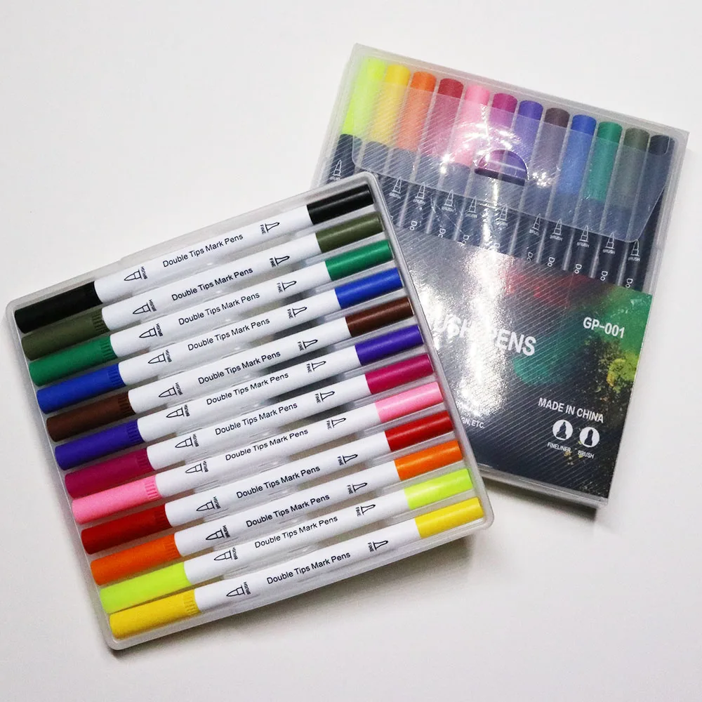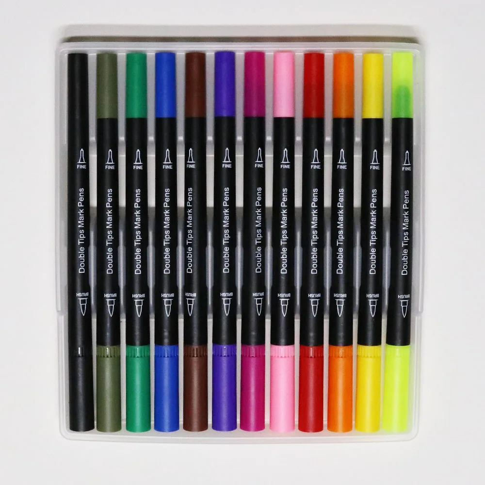 12pcs Professional Creative Cheap Paint Drawing Marker Watercolor Dual Tip Brush Pen Set