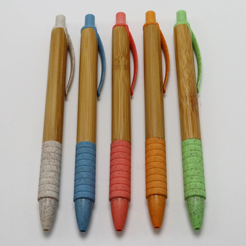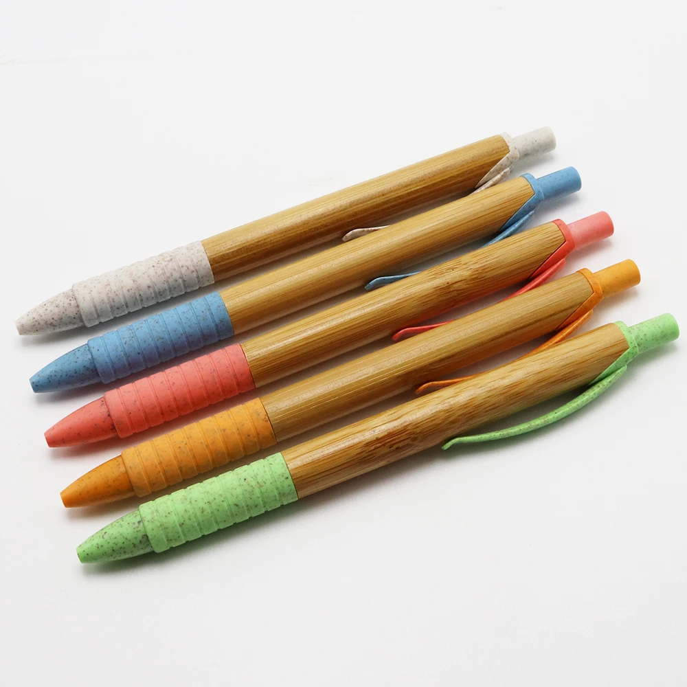 Wheat Straw Pen Bamboo Eco Plastic Ballpoint Pens Promotional Bamboo Ball Pen with Custom logo