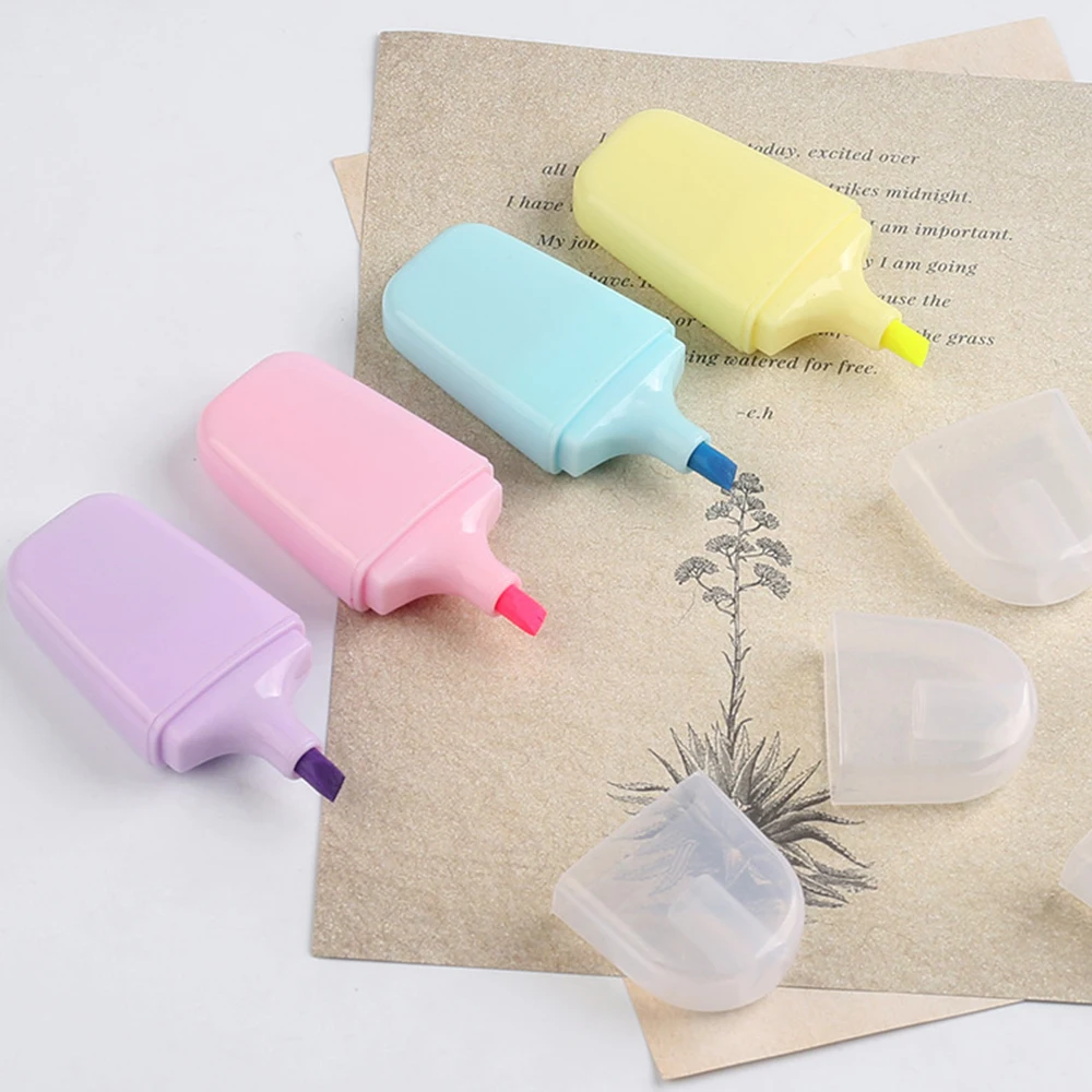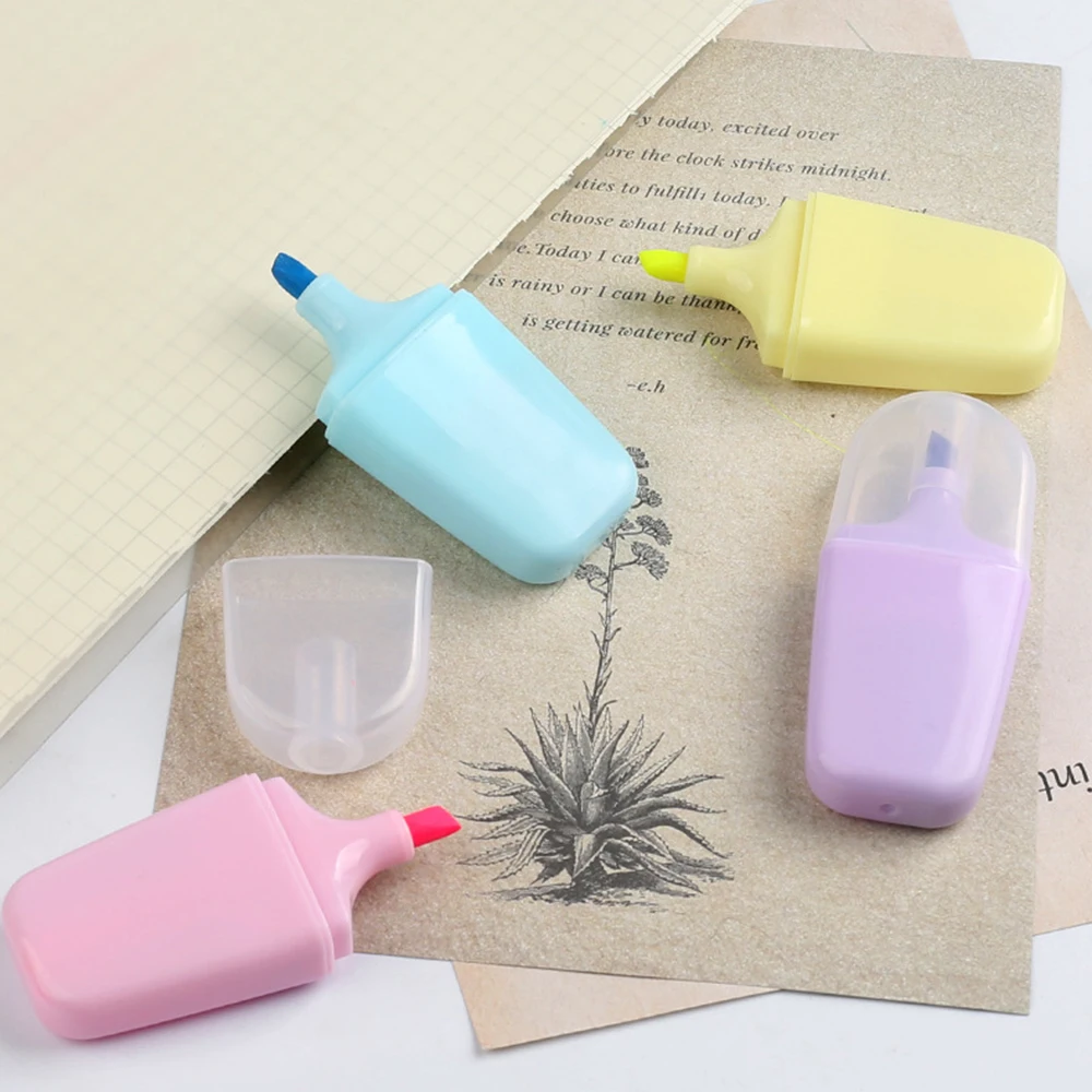 New Promotional Simple Shape Aesthetic 4Piece Colors Flat Shape Toe Highlighter Pens